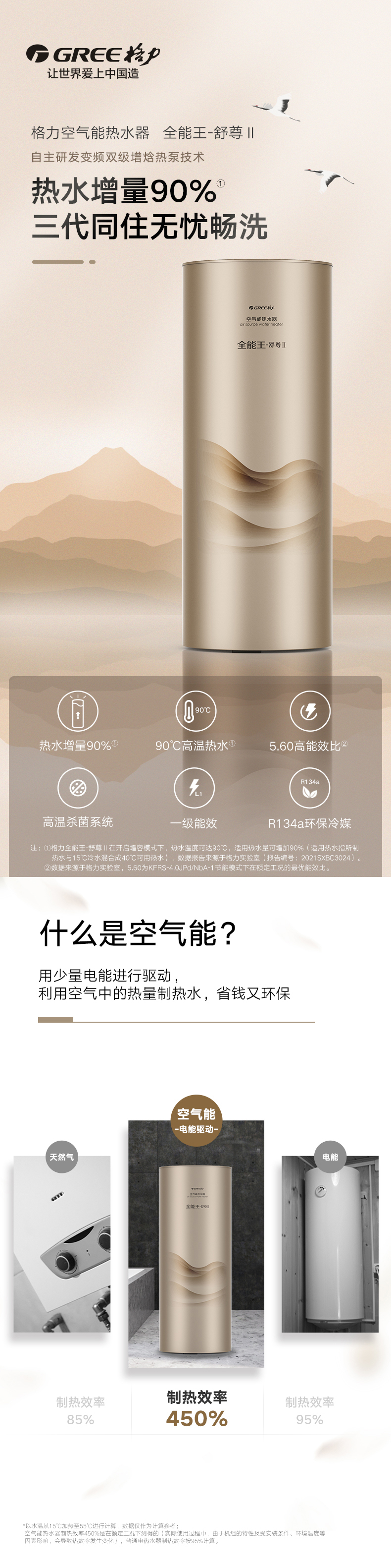 雙級增焓變頻壓縮機,-15℃制90℃高溫熱水,熱水增量90%