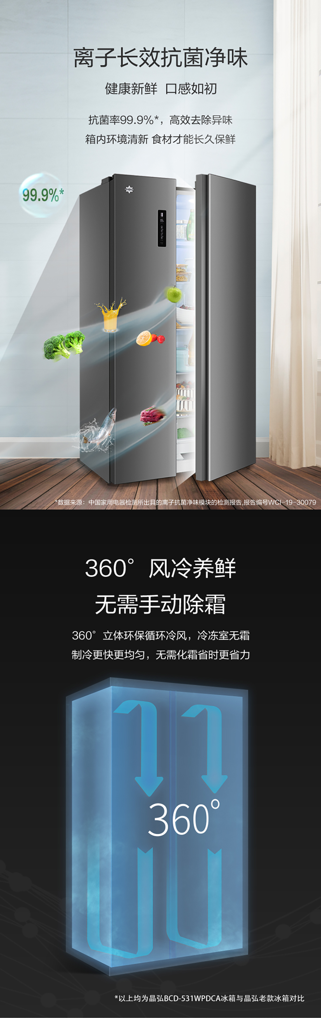 搭載-33℃深凍鎖鮮科技,肉汁飽滿更長久。采用離子長效抗菌凈味,抗菌率高達99.9%。風(fēng)冷無霜,拒絕風(fēng)干,食材水潤新鮮。