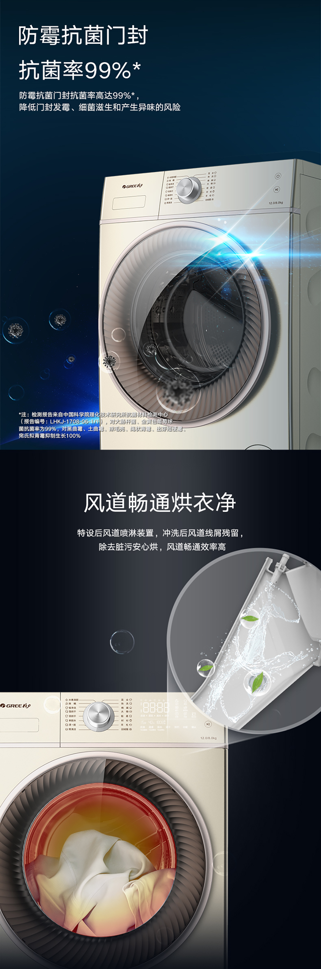 極凈去污,一次洗凈多類污漬;大容量,全家人衣物無需分類分開洗;洗烘一體,即洗即烘即穿.