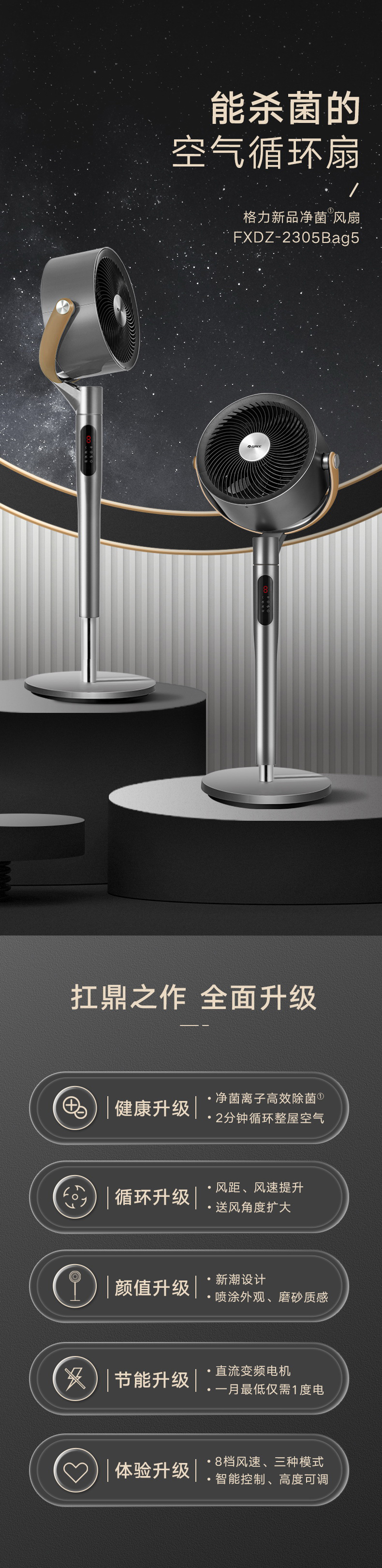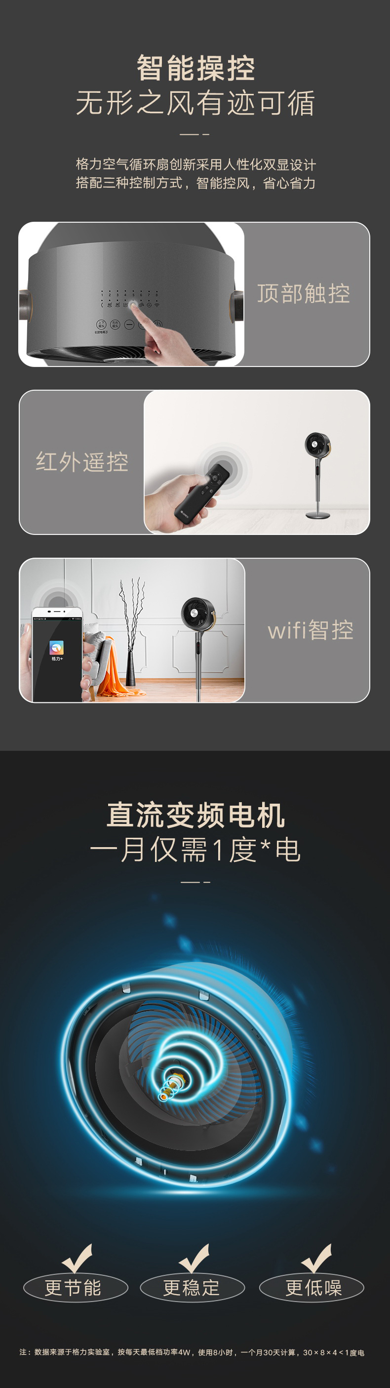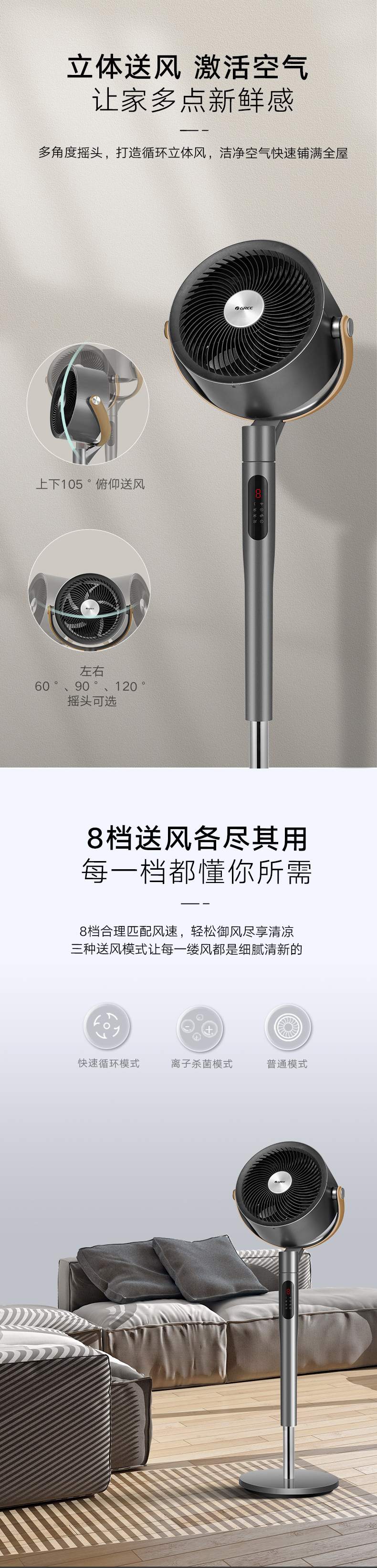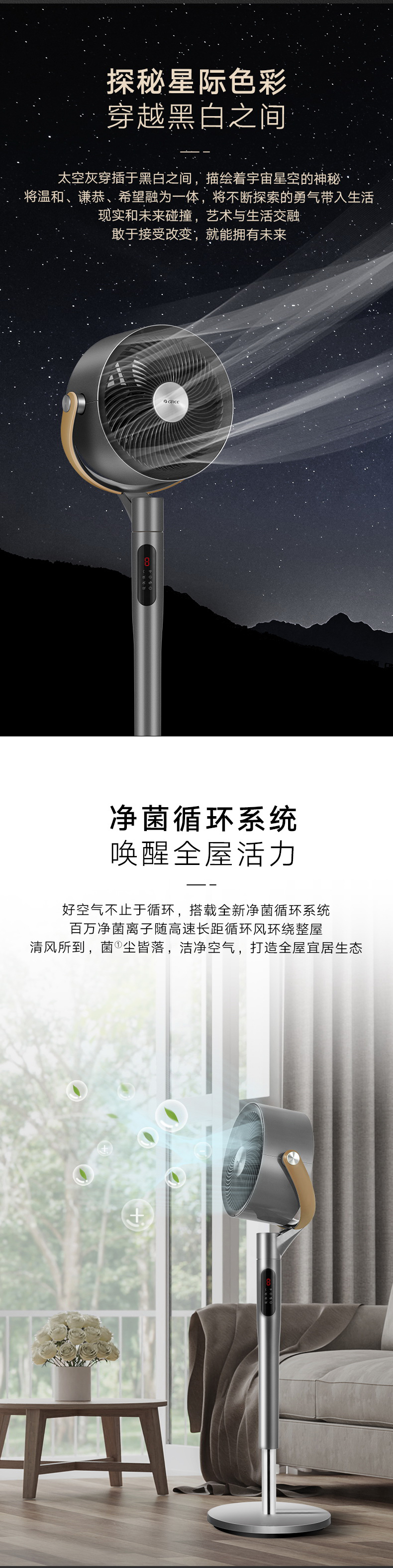 凈菌循環(huán)系統(tǒng),喚醒全屋活力;空調(diào)新伴侶,久吹不沉悶;2分鐘循環(huán)整屋空氣;直流變頻電機,一月僅需一度電
