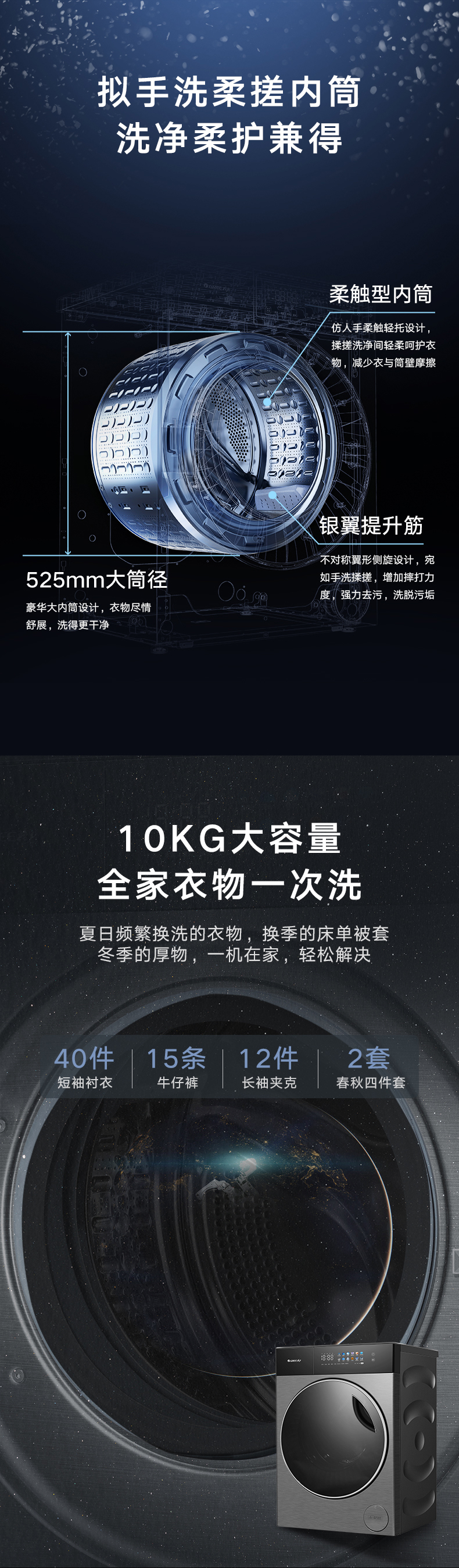 AI智能感應(yīng),臟污一鍵洗凈。AI慧眼識污,智能判斷洗滌凈度,洗凈比高達1.1