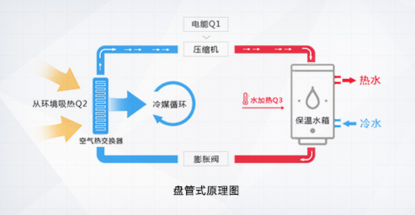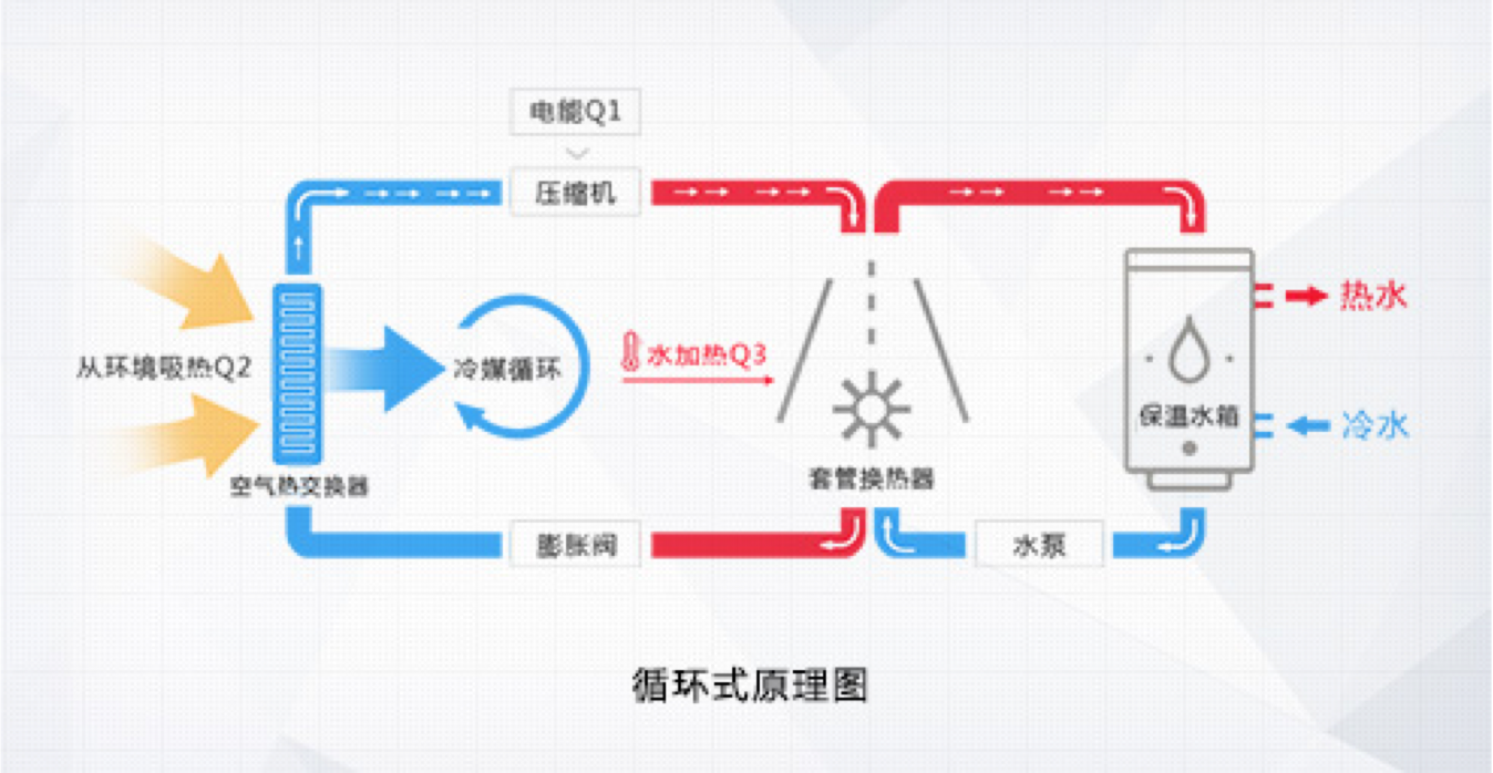 格力空氣能熱水器,傳承空調(diào)核心科技,以消耗一部分電能為補(bǔ)償,通過(guò)熱力循環(huán),從周圍環(huán)境的低品位能源(空氣源)取得熱量,通過(guò)壓縮機(jī)將其輸送至冷凝器,釋放給水箱內(nèi)的水將其加熱。它的工作原理與空調(diào)制熱時(shí)的原理相類似,只是空調(diào)是 從自然環(huán)境中吸取熱量,供給室內(nèi)空氣,而空氣能熱水器是以這部分熱量加熱生活熱水,其能效比是電熱水器的4倍,是燃?xì)鉄崴鞯?倍,是太陽(yáng)能熱水器的近2倍,是一種新型的高效、節(jié)能、環(huán)保的熱水器產(chǎn)品。一度電的付出,4倍熱量的收獲!